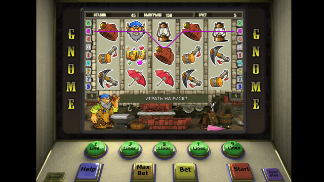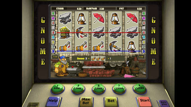 Онлайн-слот выпущен российским производителем программного обеспечения Igrosoft. Оформление игры выполнено в мультипликационном стиле. Качественная графика дополняется анимационными эффектами. Правила, геймплей и панель управления доступны на русском языке. Игровой автомат Гном предоставляет возможность выигрывать крупные суммы, получать призы в бонусной игре и приумножать выигрыши.